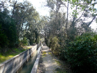 Il existait au moins deux prises d’eau pour permettre l’arrosage des champs et une alimentait une sorte de catapulte qui emmenait l’eau dans les caisses de la bastide qui ainsi disposait de l’eau aux robinets. Des vestiges sont encore visibles. Les propriétaires voisins côté Ouest sont Marius et Joseph Béranger et côté Est après l’Aqueduc Antoine et Joseph Béranger. L’Aqueduc qui se trouve sur la propriété des Escourches est dénommé « Aqueduc des Beynet ou de la Tuilliere. Il se compose de 6 arches de 10 mètres d’ouverture plein cintre supportées par des piles de 3,40 mètres d’épaisseur à leur base.