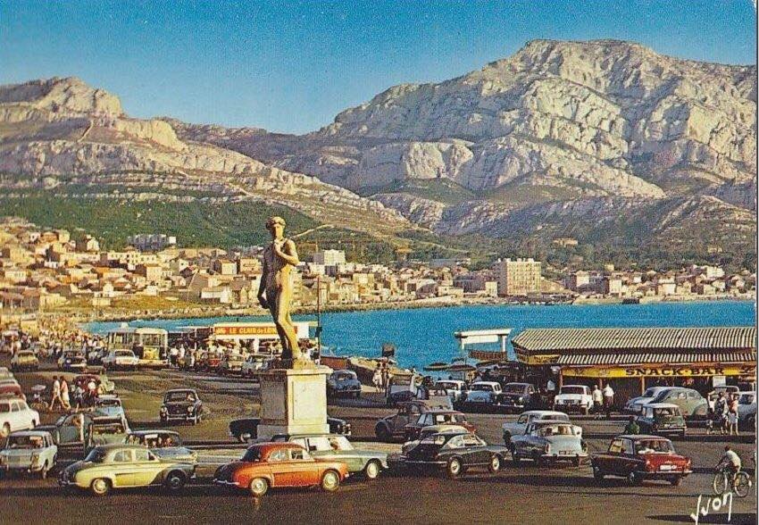 Des années 60 jusqu’à la fin des années 70, on pouvait déguster une bière Phénix, une glace ou encore un sandwich au pied de la Statue de David et quasi les pieds dans l’eau…la Brasserie les Mouettes jaune et bleue était encore posée là avec sa grande terrasse et sa véranda, mais l’aménagement artificiel du littoral créé à la fin des années 1970 par Gaston Defferre va emmener à la disparation de ce grand snack très populaire coincé entre la route et la mer.