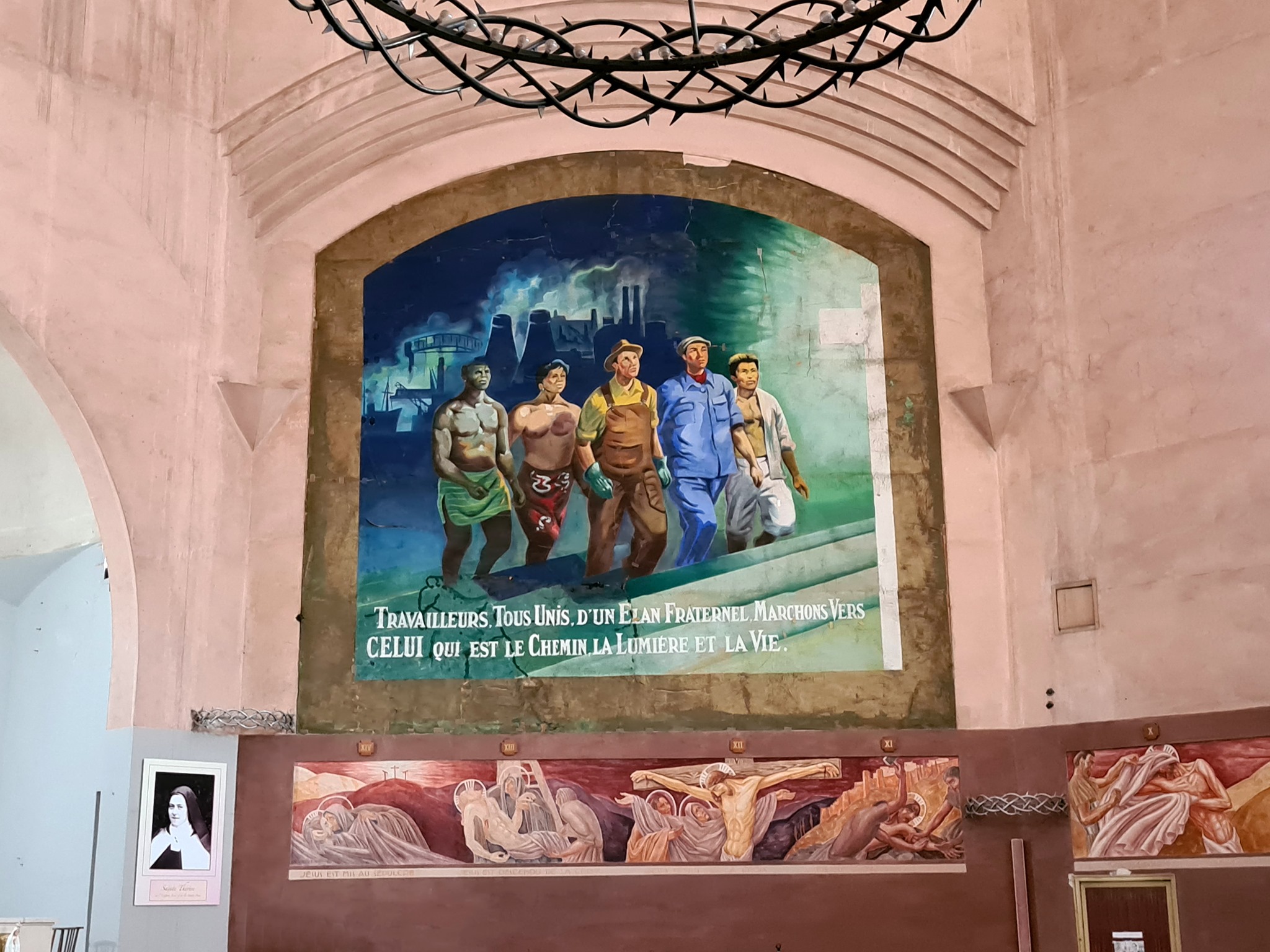 Mais c’est à l’intérieur de l’édifice qu’on ressent toute sa vocation à s’adresser à la main d’œuvre de culture chrétienne du quartier, immigrée d’Espagne, d’Italie, d’Arménie ou encore du Portugal.