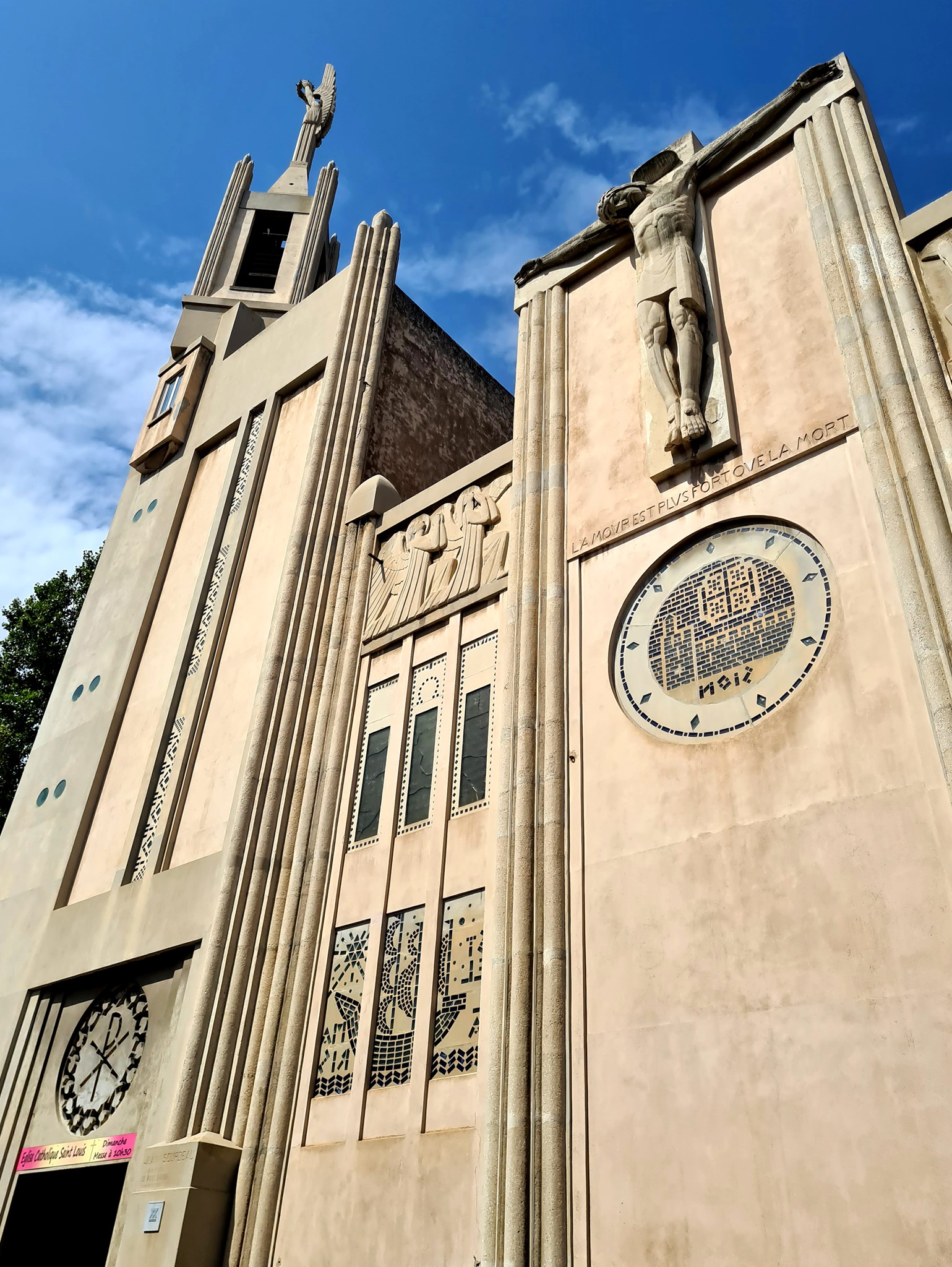 Cette très étonnante et méconnue église inaugurée en 1935 est signée de l’architecte Jean-Louis Sourdeau. Les sculptures, en taille directe dans le béton, en 6 heures de temps seulement sont l’œuvre de Carlo Sarrabezolles. Implantée à l’époque au cœur d’un quartier industriel, l’église St Louis fut la 1ère en France à avoir été confiée à 5 prêtres ouvriers. L’église dans sa totalité est inscrite au titre des monuments historiques en 1989, labellisée « Patrimoine du XXe siècle ». Autre curiosité, la cave de l’église cacherait un théâtre et un ring de boxe !