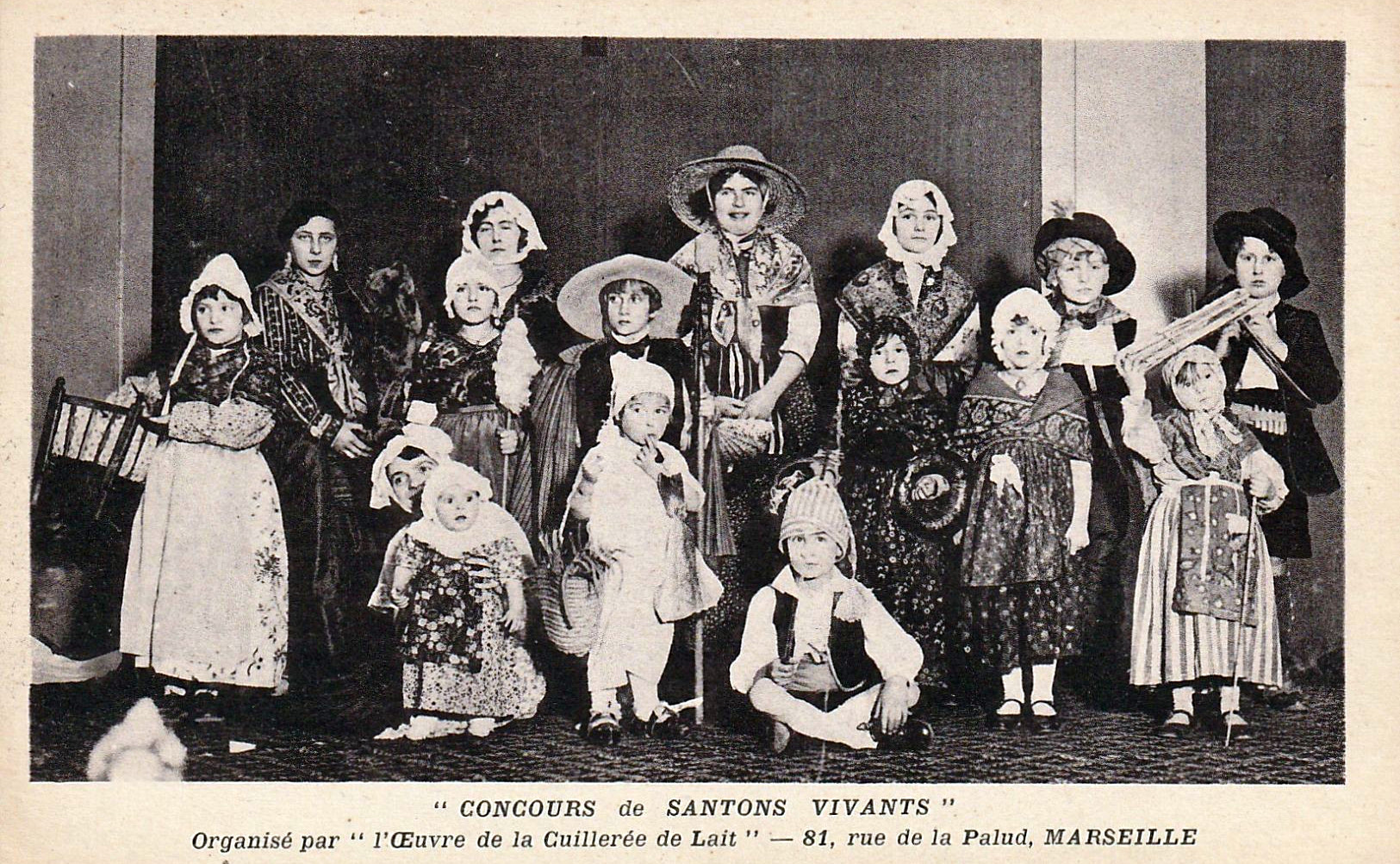 Le centre fonctionnait à la fois comme un lieu de soins, d’accompagnement social et d’éducation sanitaire. Des cartes postales montrent également des moments plus festifs avec un concours d’enfants de “santons vivants”.