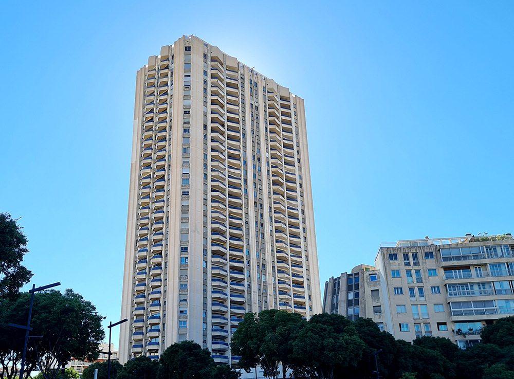 Labellisé Patrimoine du XXème siècle, cet immeuble construit en 1967 à proximité de la cité radieuse devait faire 106 mètres à l’origine. Il est emblématique à plus d’un titre. La forme cintrée de l’immeuble, ainsi que sa dénomination, viendrait d’un voyage du maître d’ouvrage dans le nouvelle capitale Brésilienne. Fernand Boukobza encore inexpérimenté conçoit cet immeuble alors