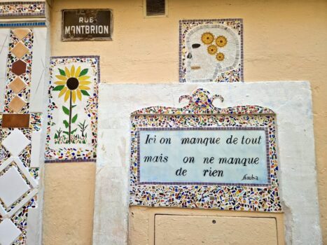 Jusqu’en 2020, le mur du 4 rue Saint Antoine dans le Panier est encore blanc immaculé…mais c’était avant le passage du street-artiste ShamSham qui a souhaité rendre hommage à Marcel Pagnol via des scénettes autour de ses œuvres les plus emblématiques. La fresque débute à gauche avec la fameuse scène du film “Fanny” de 1932 dans laquelle