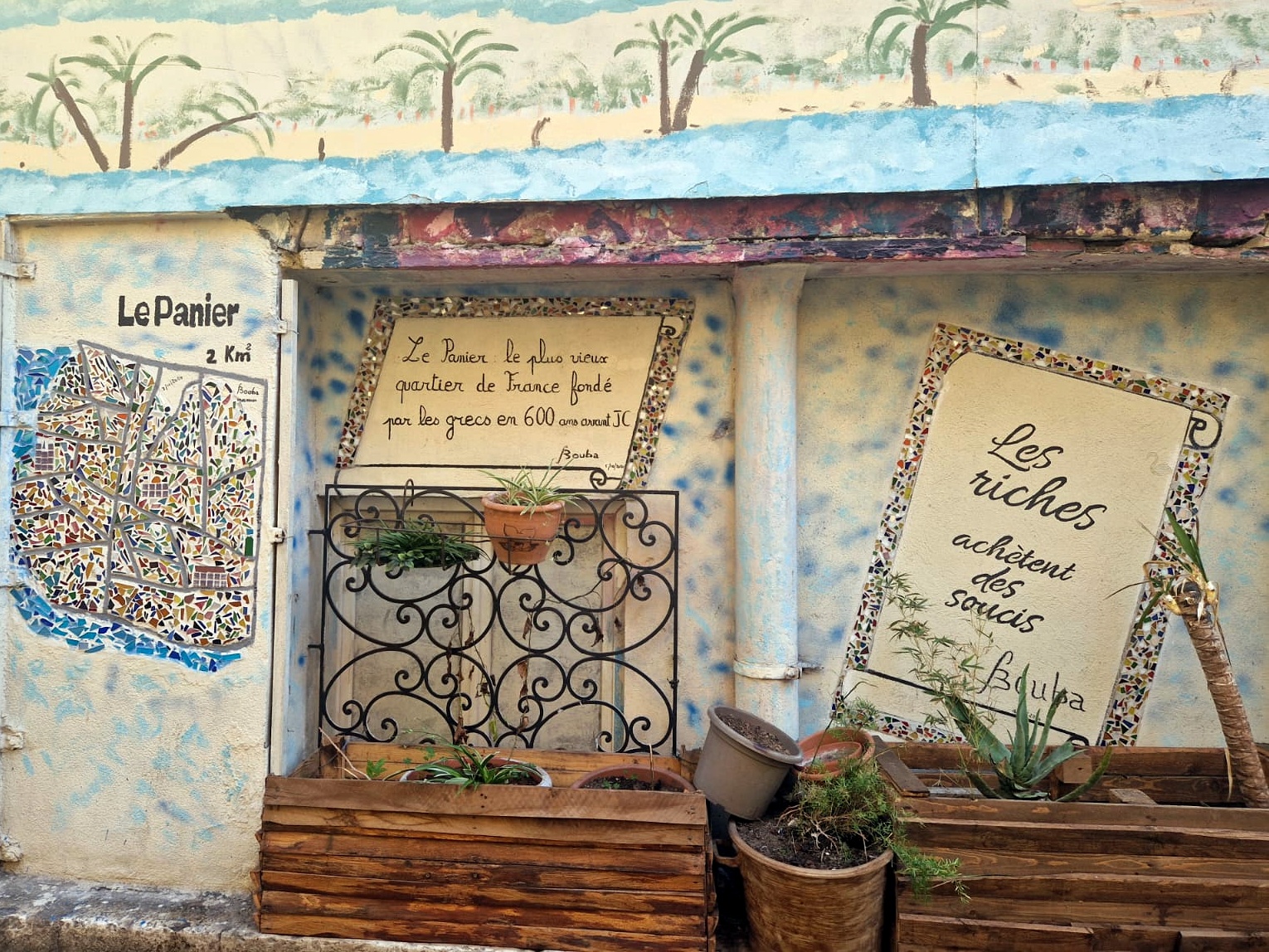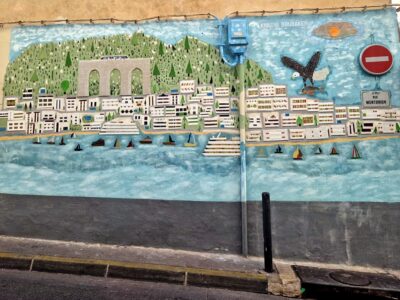 Depuis peut-être 2024, un pan du mur du 116 rue du Vallon des Auffes, s’est parée d’une très belle et assez inédite fresque en relief représentant le port et son viaduc, le tout orné d’un “V” sur lequel est posée une ancre. Pas plus d’informations pour le moment ! SOURCES Œuvre PHOTOS Dominique Milherou A NOTER