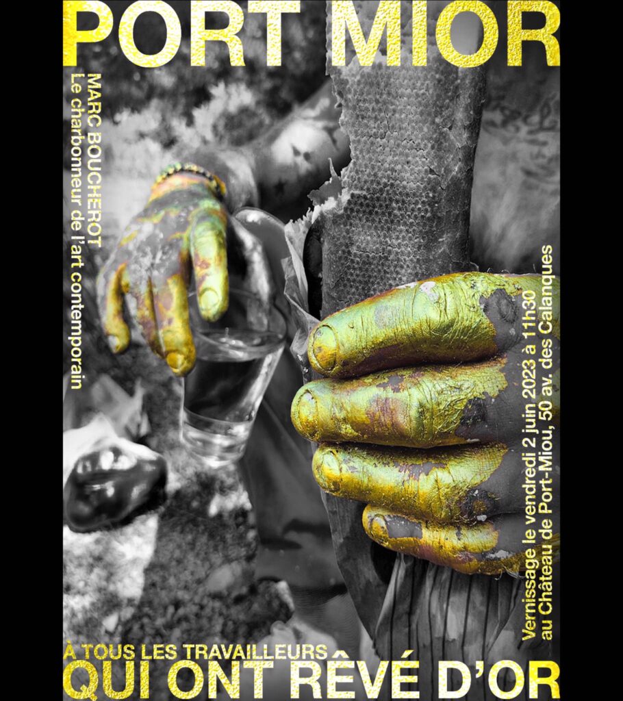 Port Mior était une œuvre d’envergure signée par l’artiste marseillais Marc Boucherot, installée en 2023 dans la calanque de Port-Miou, à Cassis, qui fut le siège en 1910 de la première manifestation écologique contre l’exploitation industrielle des calanques. Conçue comme une intervention artistique en plein paysage, elle rendait hommage, à travers des matériaux à l’abandon colorés à la peinture dorée, à l’histoire humaine et industrielle du site, marqué par l’exploitation des carrières et le labeur des ouvriers “qui ont rêvé d’or“.