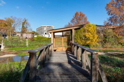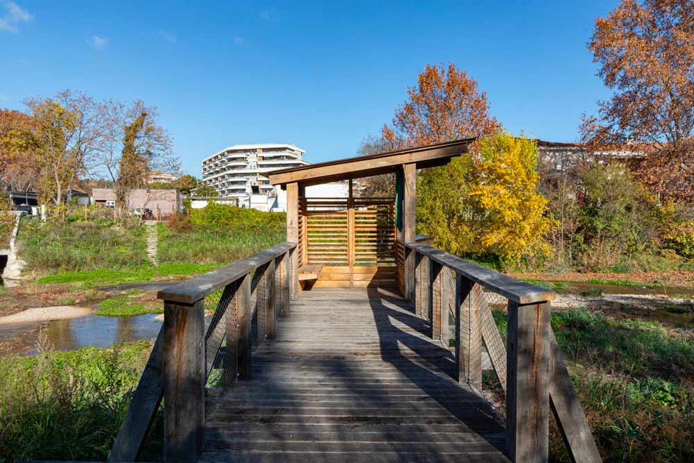 La création d’un cheminement doux, s’inscrivant dans le projet de voie verte de l’Huveaune, offre un espace de promenade et de détente accessible à tous. Le site devient un lieu de nature au cœur de la ville, propice aux loisirs, à la découverte et à l’observation de la faune et de la flore.